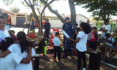 Profissionais do Corpo de Bombeiros palestraram sobre suas funções, exibiram equipamentos e enfatizaram a importância do bom relacionamento para com a população